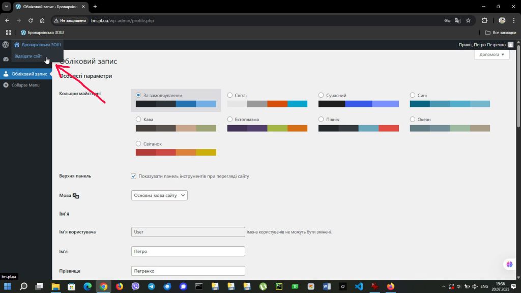Нарешті, після збереження інформації, перейдіть по посиланню “Відвідати сайт” .