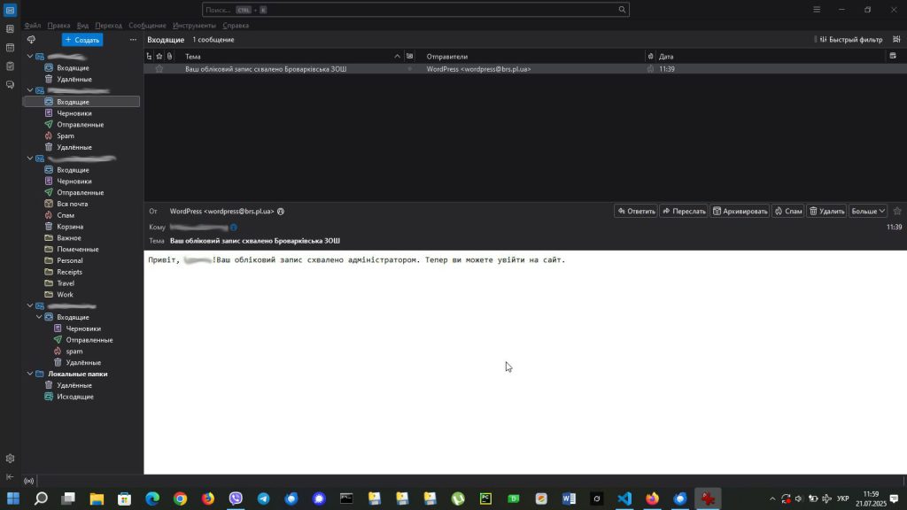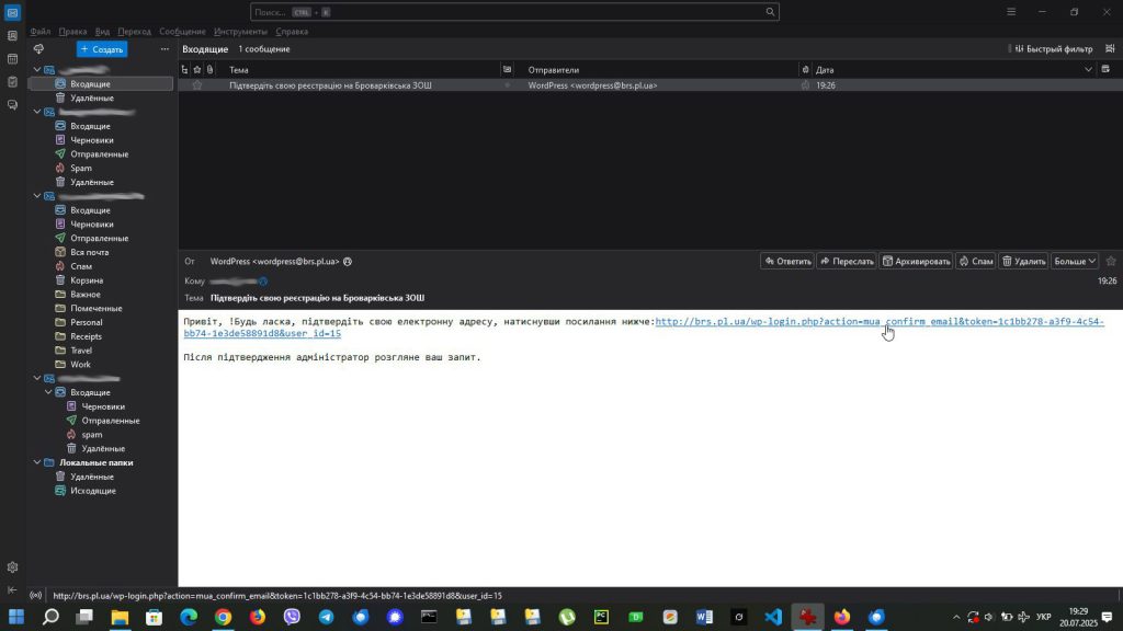 Далі перевірте свою поштову скриньку, ту, яка була вказана при реєстрації і ви повинні отримати такого листа.