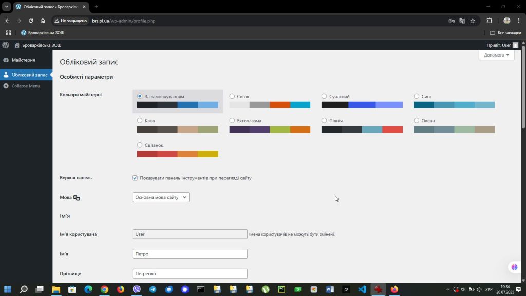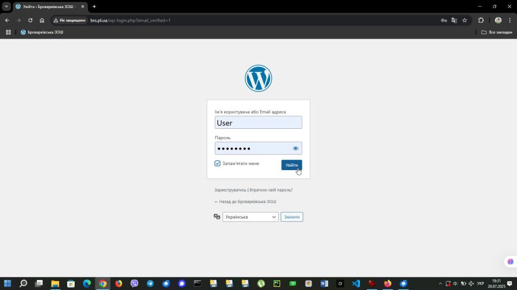 - Поле “Ім’я користувача” – використовуються лише символи латиниці та цифри.