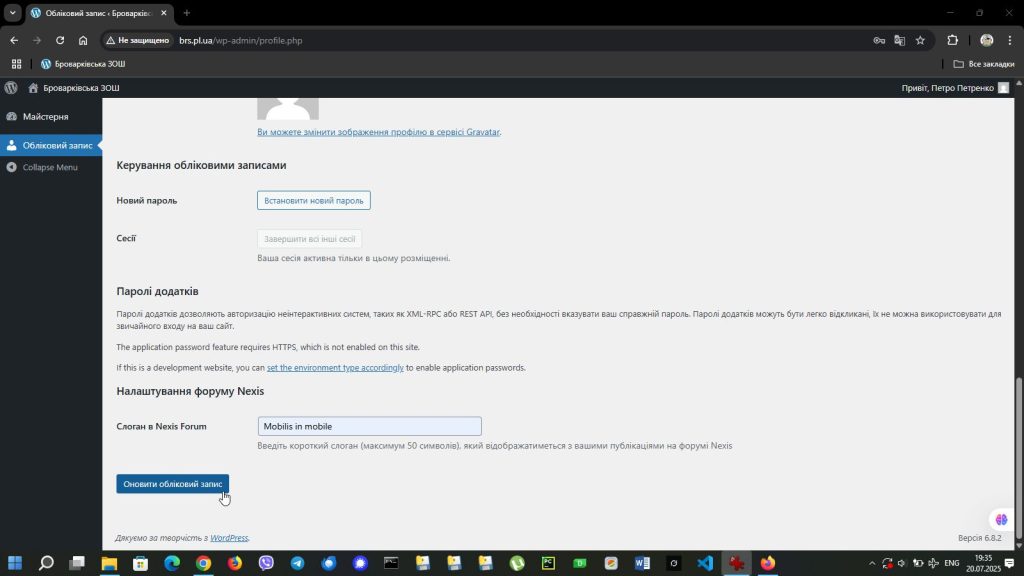 Увага! Після всіх змін, не забудьте їх зберегти, натиснувши “Оновити обліковий запис”.
